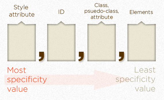 O specyficzności, czyli zasadach dopasowania reguł do węzłów na podstawie selektorów dowiecie się więcej w już istniejących źródłach – np. CSS-Tricks. Znajdujemy tam bardzo ważną infografikę: